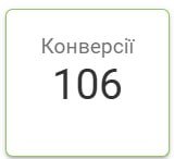106 підтверджених конверсій, тобто людей, що створили запит на навчання або зареєструвались через квіз та чат-бот