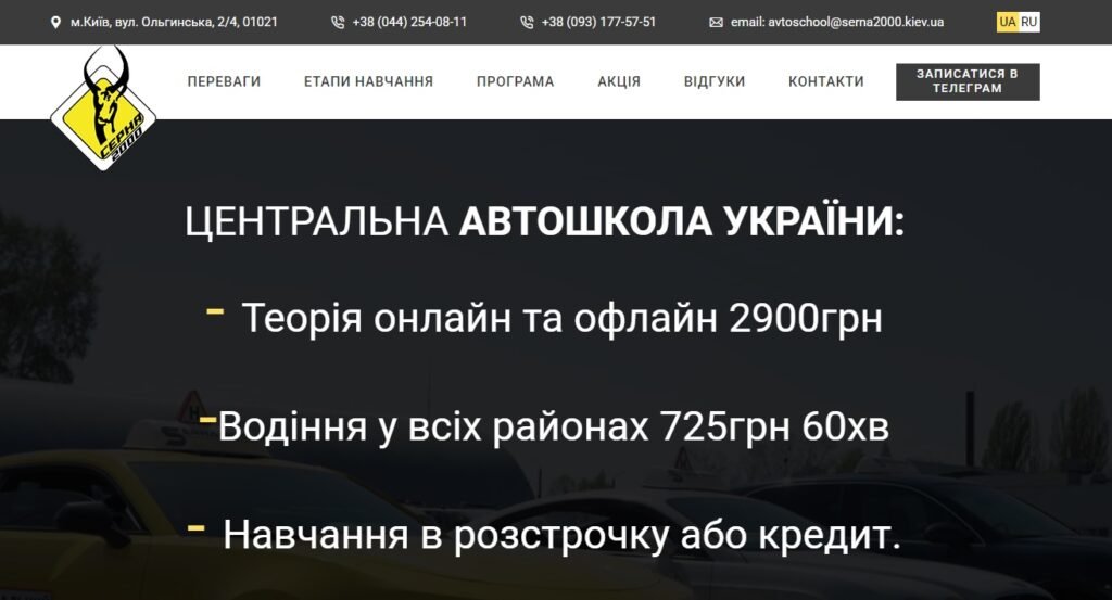 Наш клієнт — автошкола Serna2000. Одна з найвідоміших автошкіл Києва з 20-річним досвідом навчання водіїв. Вона першою в регіоні зробила ставку на онлайн-теорію та відкрила доступ до якісного онлайн-навчання з ПДР для людей з усієї України.