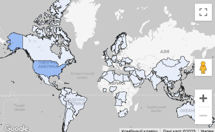 Максимальна цікавість до можливостей програми — в США, Бразилії, Аргентині та, неочікувано, в Індії.